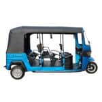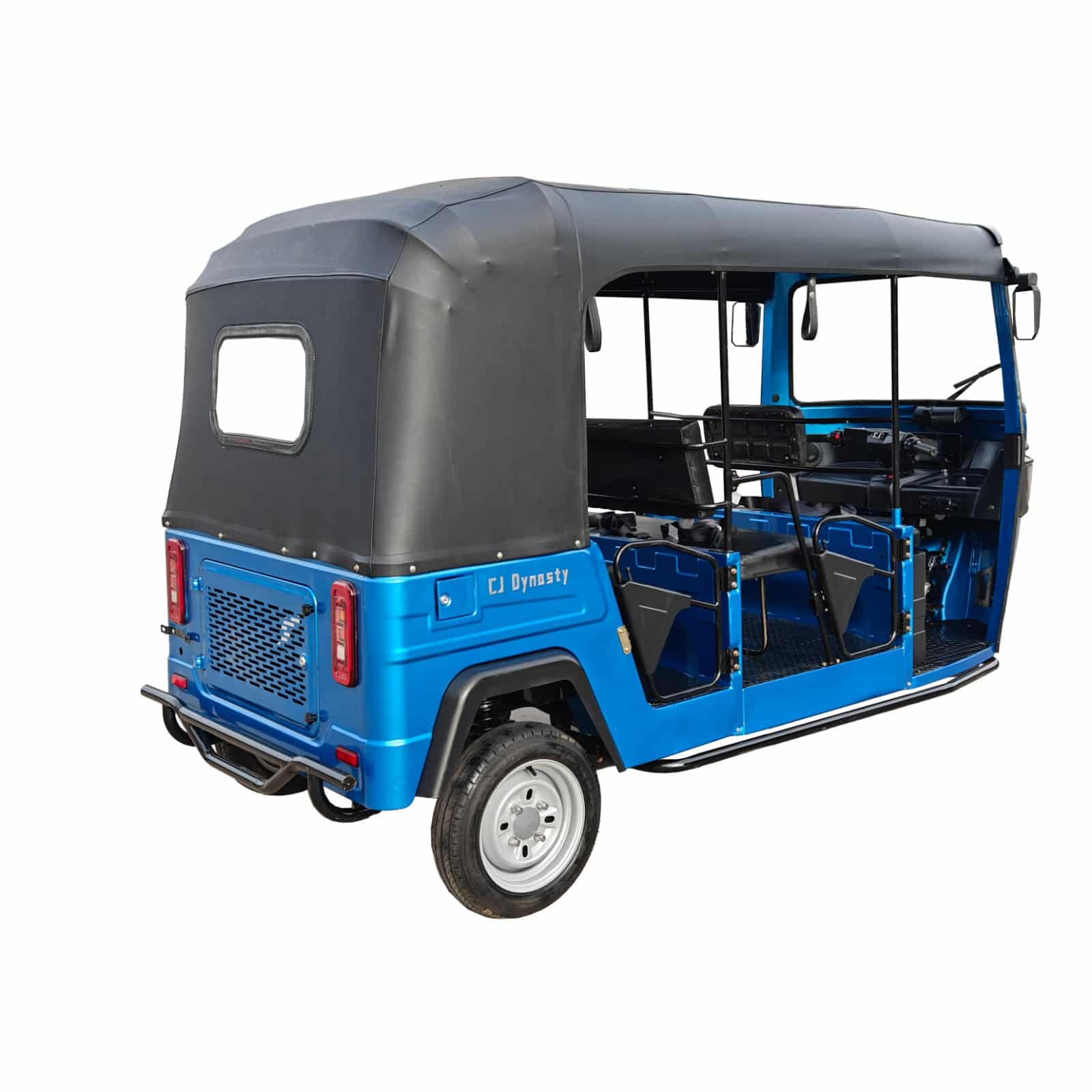 Triciclo eléctrico de gran capacidad para 9 pasajeros con tecnología de Carga Rápida. Equipado con un motor de 4000W y batería de Litio de 150Ah, permite recargar el 100% en solo 3.5 horas, maximizando el tiempo de trabajo. Ideal para flotas de transporte público y rutas urbanas frecuentes.